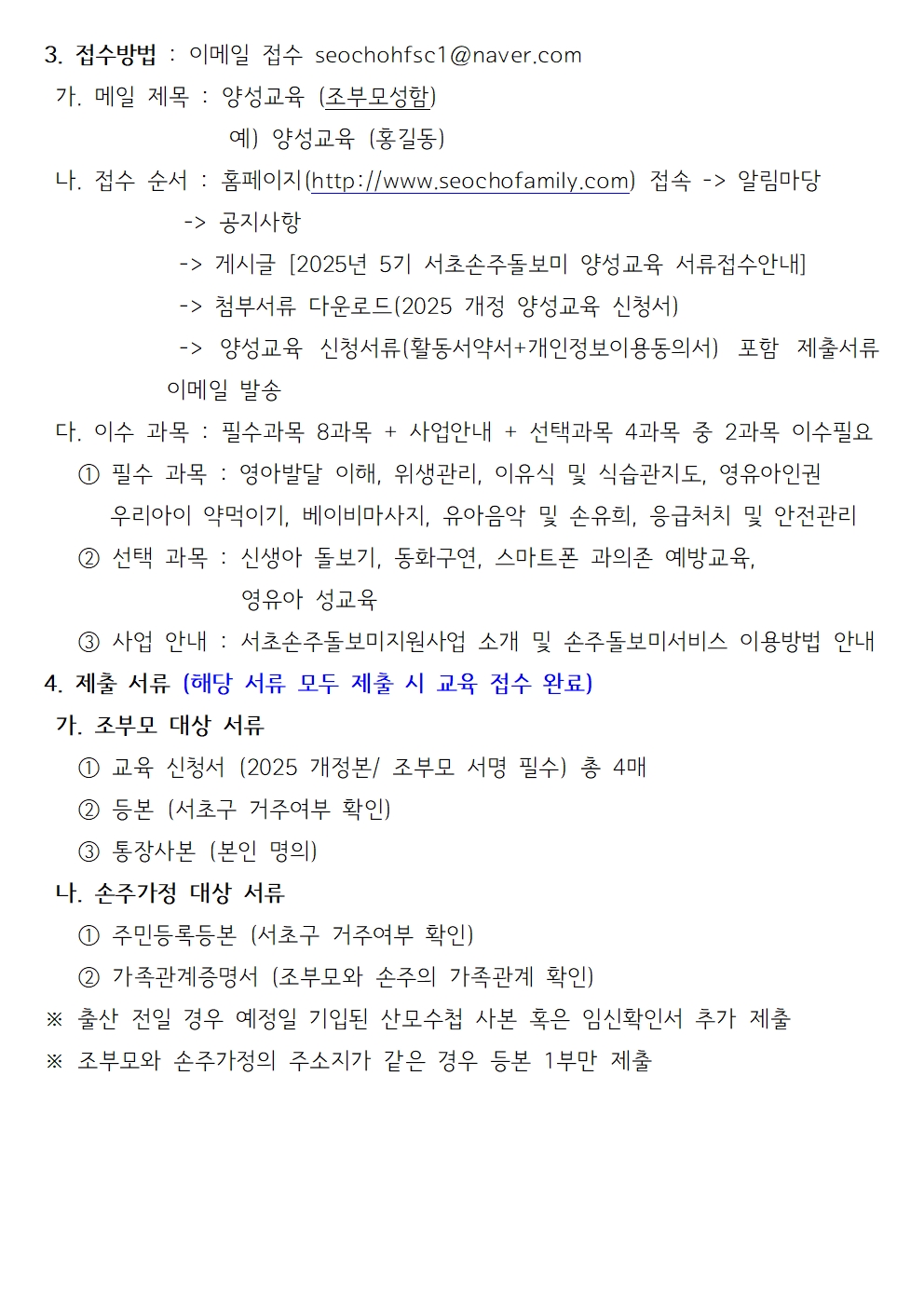 [2025년 5기 서초손주돌보미 양성교육 서류접수안내]
