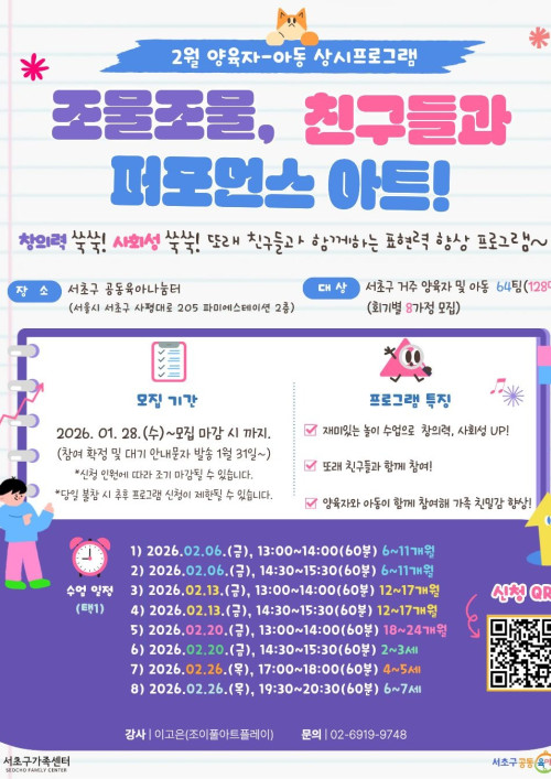 [가족사업4팀] 2월 양육자-아동 상시프로그램 "조물조물, 친구들과 퍼포먼스 아트!"