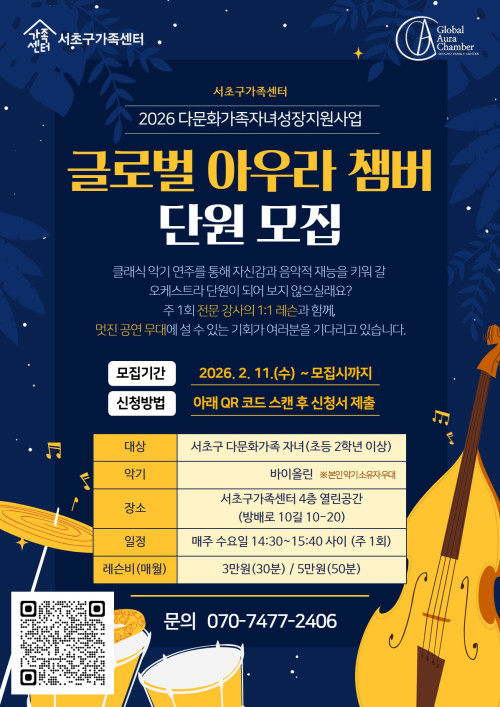 [가족사업2팀] 글로벌 아우라 챔버 단원 모집(바이올린)