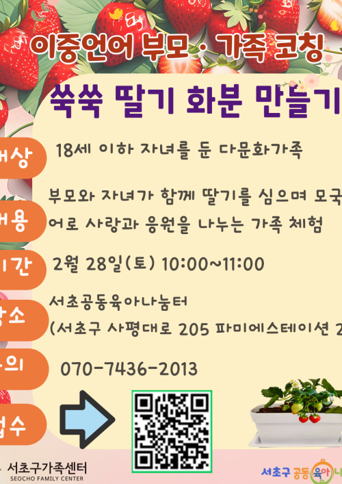 [가족사업4팀] 2026년 2월 이중언어 부모.가족 에서 "쑥쑥 딸기 화분 만들기" 프로그램 참여자 모집