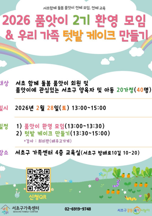 [가족사업4팀] 품앗이 전체 모임 및 전체 교육 "2026 품앗이 2기 환영 모임 & 우리 가족 텃밭 케이크 만들기"
