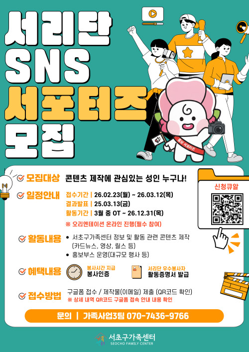 [센터전체] 서초구가족센터 홍보채널 소개(홈페이지, 인스타그램, 카카오톡채널, 유튜브)
