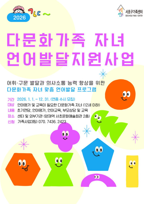 [가족사업3팀] 다문화가족 자녀 언어발달지원사업 대상자 모집