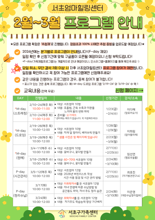 [가족사업2팀] 서초엄마힐링센터 2월~3월 프로그램 안내
