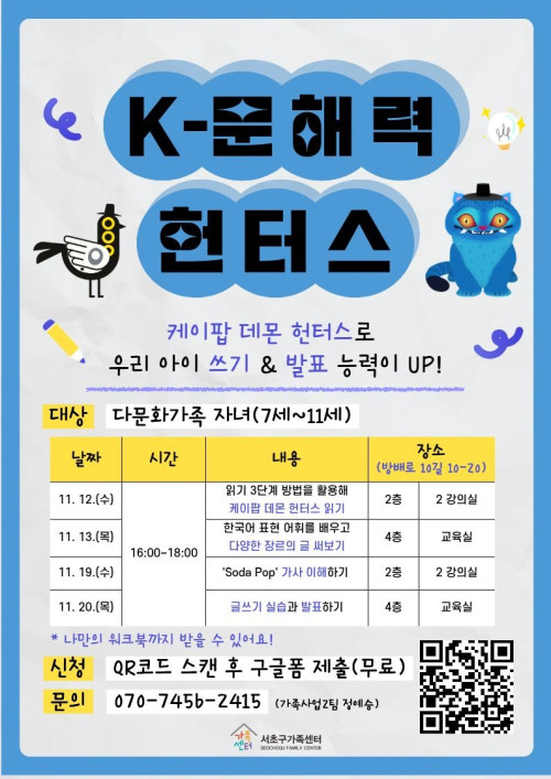 [가족사업2팀]다문화가족 아동 대상 문해력 교육 'K-문해력 헌터스' 참여자 모집