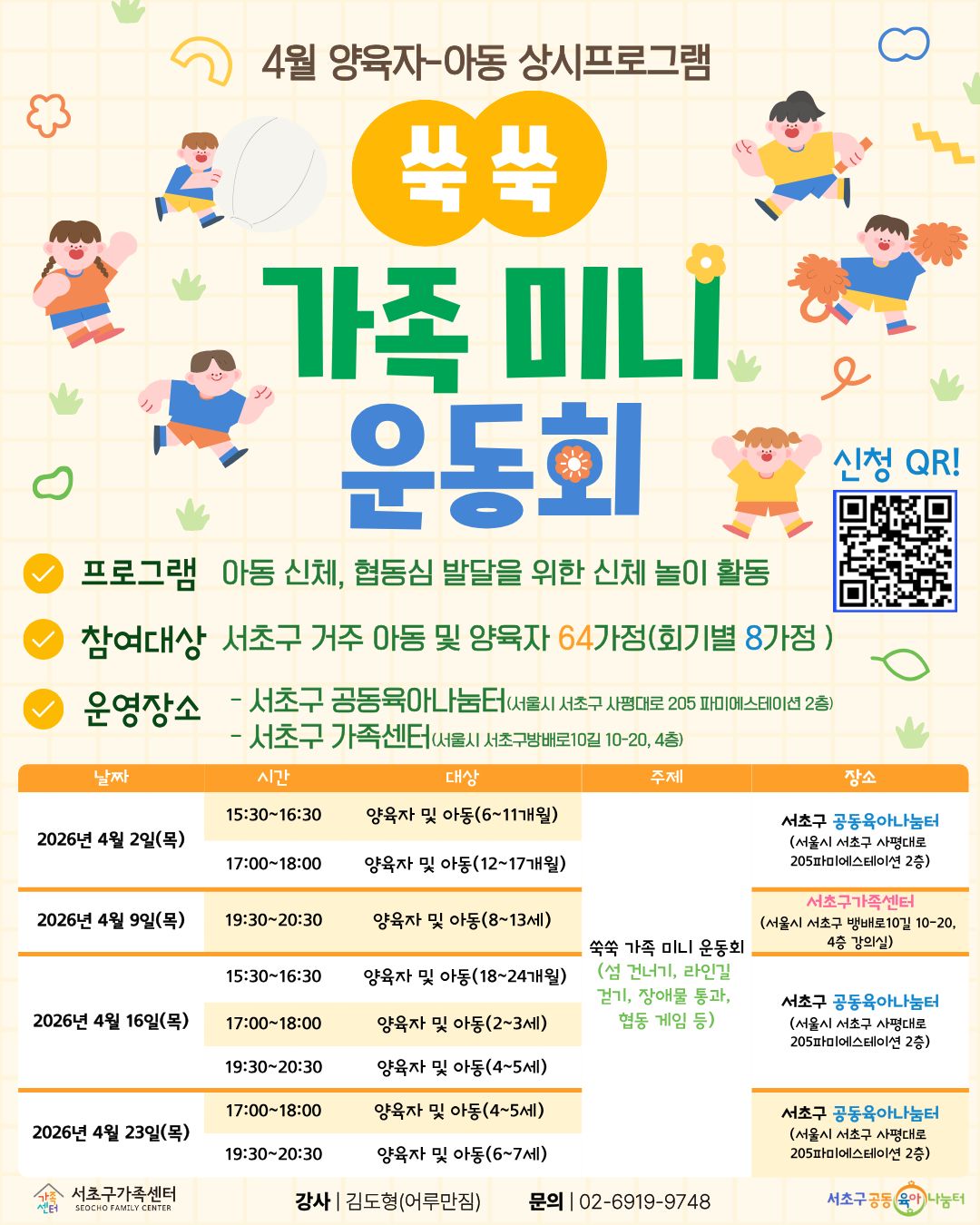 [20264월 양육자-아동 상시프로그램 쑥쑥 가족 미니 운동회참여자 모집]