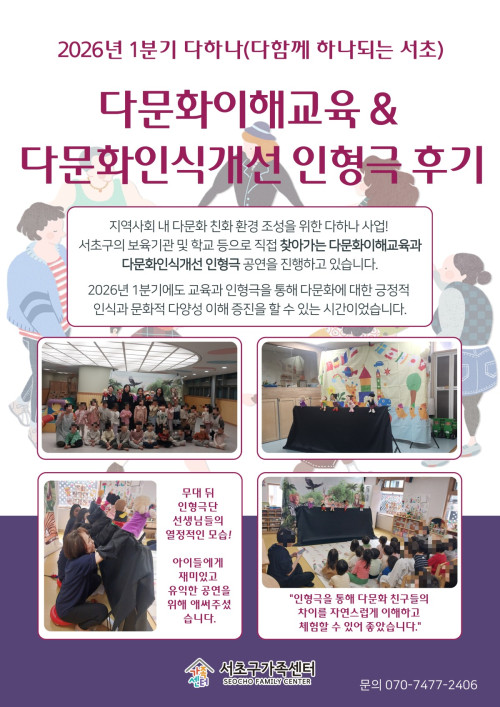 [가족사업2팀] 2026년 1분기 다하나(다문화이해교육, 다문화인식개선 인형극) 후기