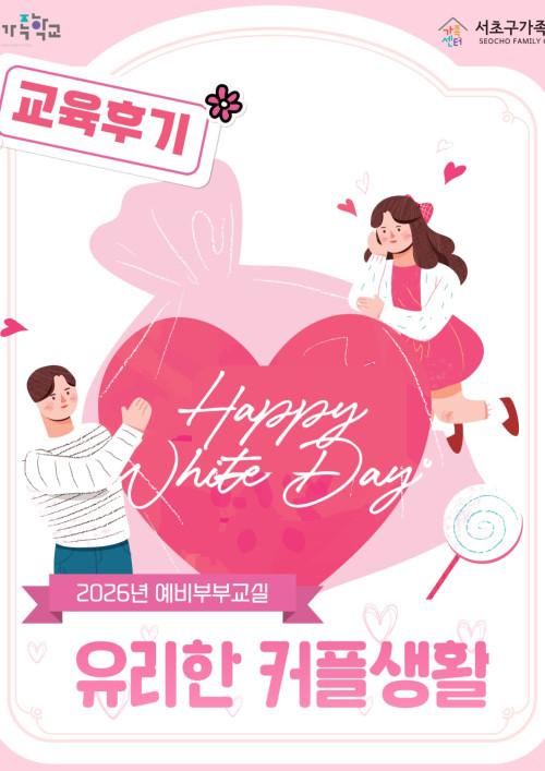 서초구가족센터 웹사이트에 등록된 이메일 주소가 전자우편수집 프로그램이나 그 밖의 수단들로 무단 수집되는 것을 거부합니다. 이를 위반 시 정보보호 등에 관한 법률 제50조의 2와 65조의 2에 따라 형사처벌 됨을 유의하시기 바랍니다.』