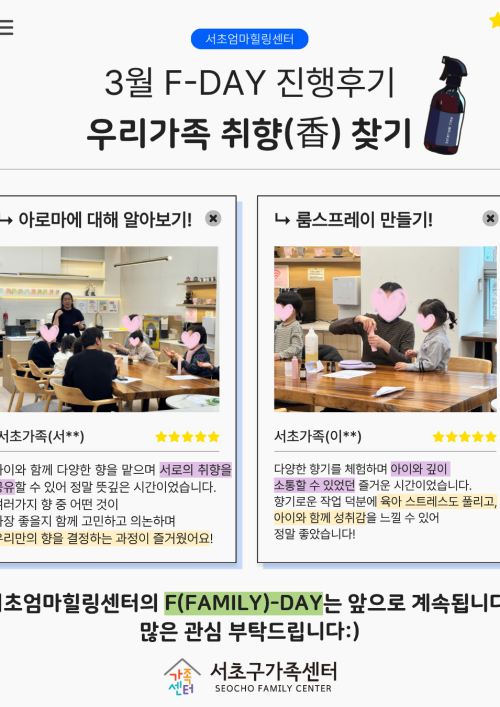[가족사업2팀] 서초엄마힐링센터 3월 F-DAY 진행후기