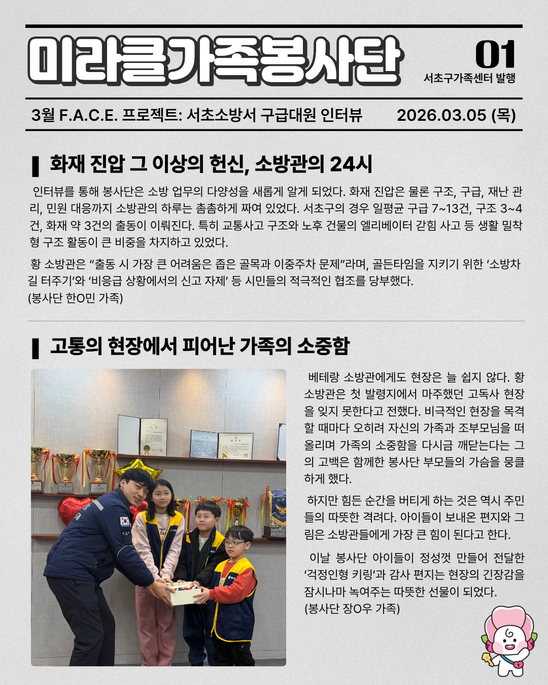 [가족사업1팀] 미라클가족봉사단 3월 F.A.C.E. 프로젝트 신문 기사